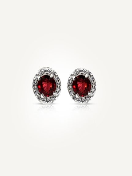 Oval-Cut Garnet Halo Stud Earrings in 925 Sterling Silver