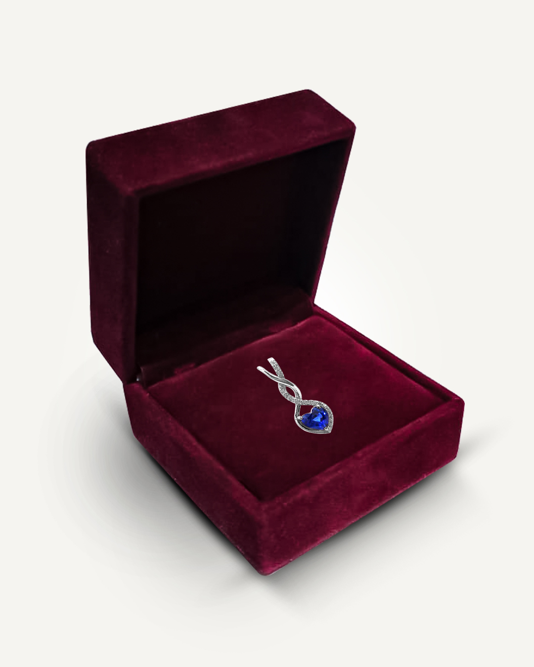 Romantic and refined, this pendant features a heart-cut blue sapphire cradled within an elegant infinity-inspired design. The rich, deep-blue sapphire is framed by shimmering 16 American Diamond accents, adding radiant sparkle along the flowing curves of the pendant. Crafted in 925 sterling silver, the piece symbolises timeless love and continuity, making it a meaningful gift or a stylish personal keepsake.