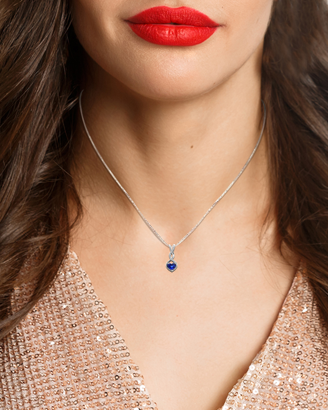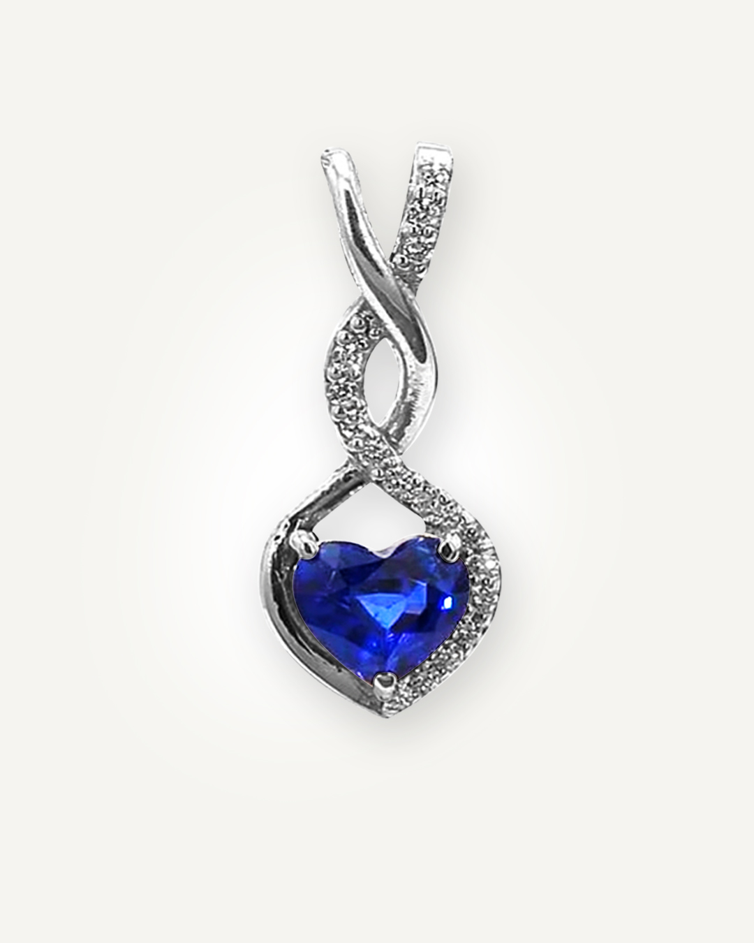 Heart-Cut Blue Sapphire Infinity Pendant in 925 Sterling Silver with American Diamond Accents