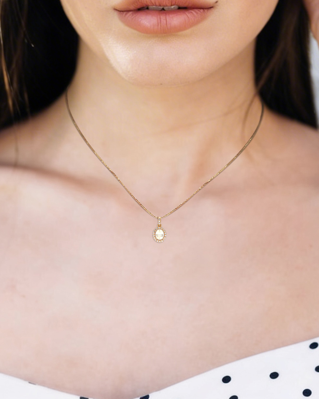 Exuding elegance and subtle radiance, this pendant features a beautifully oval-cut Sri Lankan light yellow sapphire set in 18K gold. The gentle hue of the sapphire is enhanced by 21 sparkling American diamond that gracefully trace the bail, adding a delicate shimmer with every movement. Designed to capture light and attention, this pendant blends refined craftsmanship with natural charm, making it a timeless piece that elevates any ensemble.