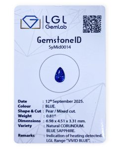 Pear Cut Ceylon Vivid Blue Sapphire 0.81 Carat