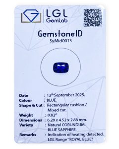 Rectangular Cushion Ceylon Royal Blue Sapphire 0.82 Carat
