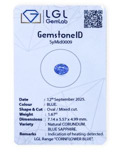 Oval Cut Ceylon Blue Sapphire 1.67 Carat