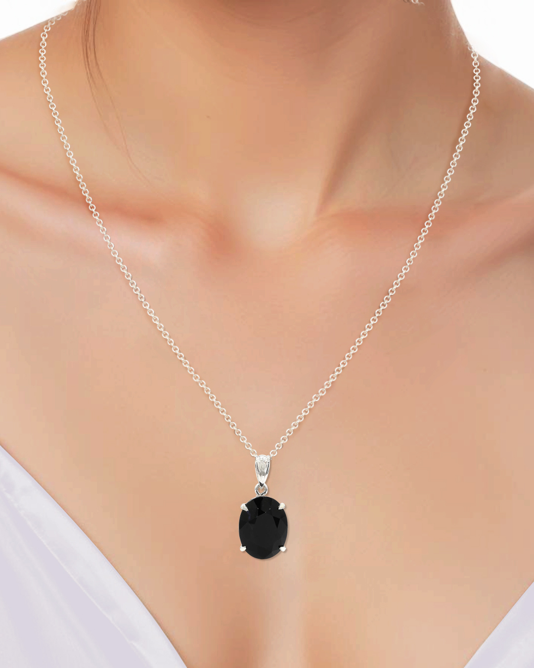 Oval-Cut Black Tourmaline Pendant in 925 Sterling Silver