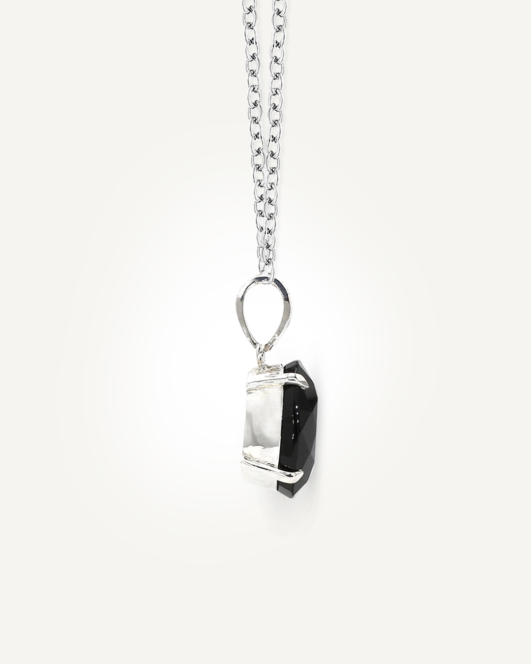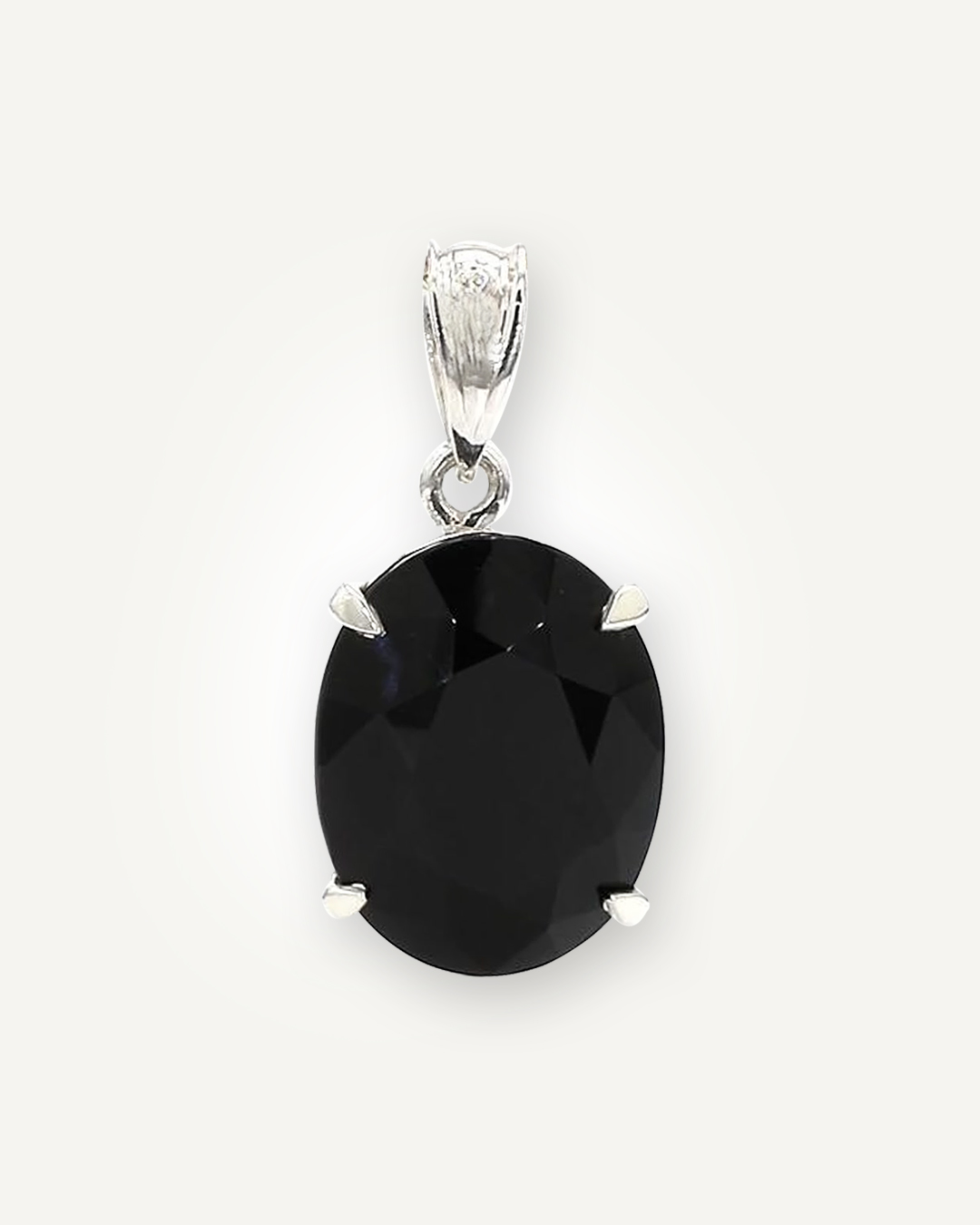 Elegant and bold, this pendant showcases an oval-cut black tourmaline set in delicate 925 sterling silver. The stone’s deep, captivating hue contrasts beautifully with the sleek silver setting, highlighting its natural strength and allure. Designed with timeless simplicity, this pendant is a versatile piece that adds a touch of refined sophistication to both everyday wear and special occasions.