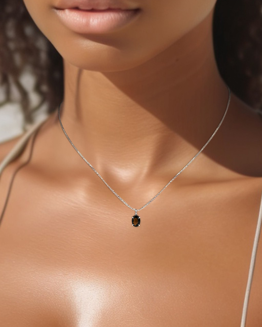 Warm and distinctive, this pendant features a large oval-cut Brown Quartz set in delicate 925 sterling silver. The gem’s rich earthy tones radiate natural elegance, while the sleek silver setting enhances its depth and beauty. Designed with timeless simplicity, this pendant is a versatile piece that transitions effortlessly from everyday wear to special occasions.