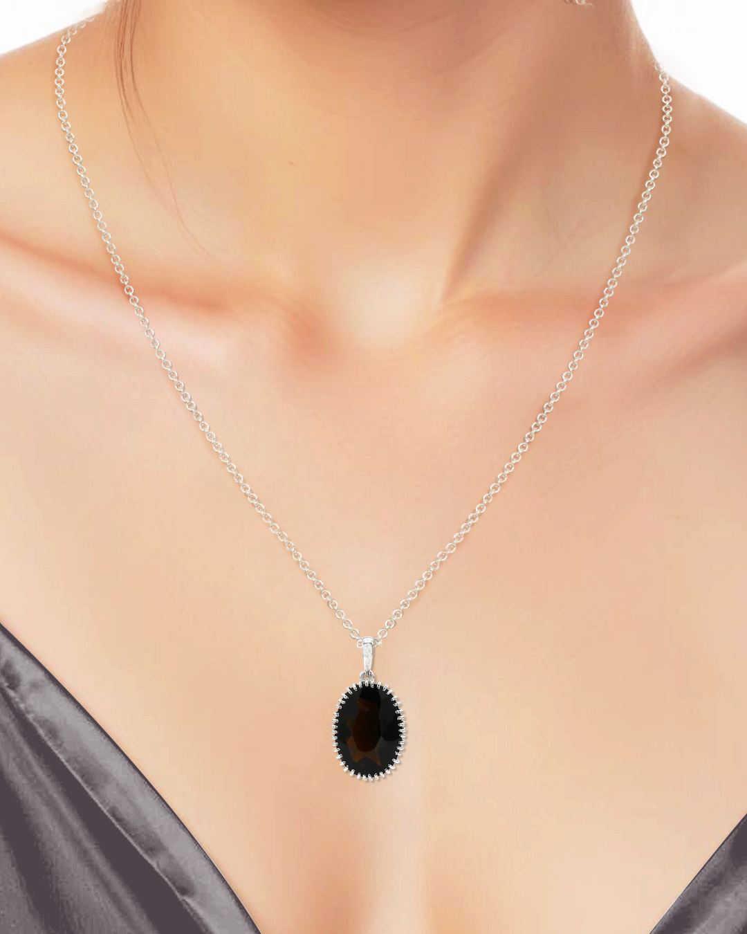 Oval-Cut Brown Quartz Pendant in 925 Sterling Silver