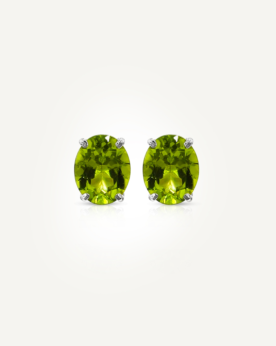 Fresh and vibrant, these earrings feature oval-cut natural peridots that display a lively green hue with beautiful internal sparkle. Set in classic 925 sterling silver prong settings, the stones are showcased in their full brilliance, offering a clean and timeless look. Lightweight and versatile, these studs add a refreshing pop of colour that pairs effortlessly with both everyday outfits and special-occasion styles.