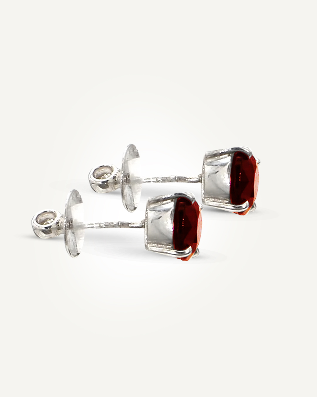 Classic and understated, these earrings feature oval-cut natural red garnets securely held by four polished 925 sterling silver prongs. The garnets’ rich crimson hue radiates warmth and sophistication, while the simple prong setting allows the natural beauty of the stones to shine. Elegant and versatile, these earrings are perfect for adding a refined touch to both everyday wear and special occasions.