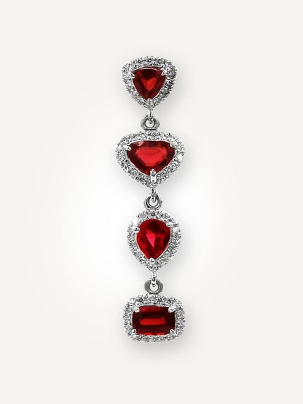 Multi-Shape Garnet Drop Pendant with Halo Accents in 925 Sterling Silver