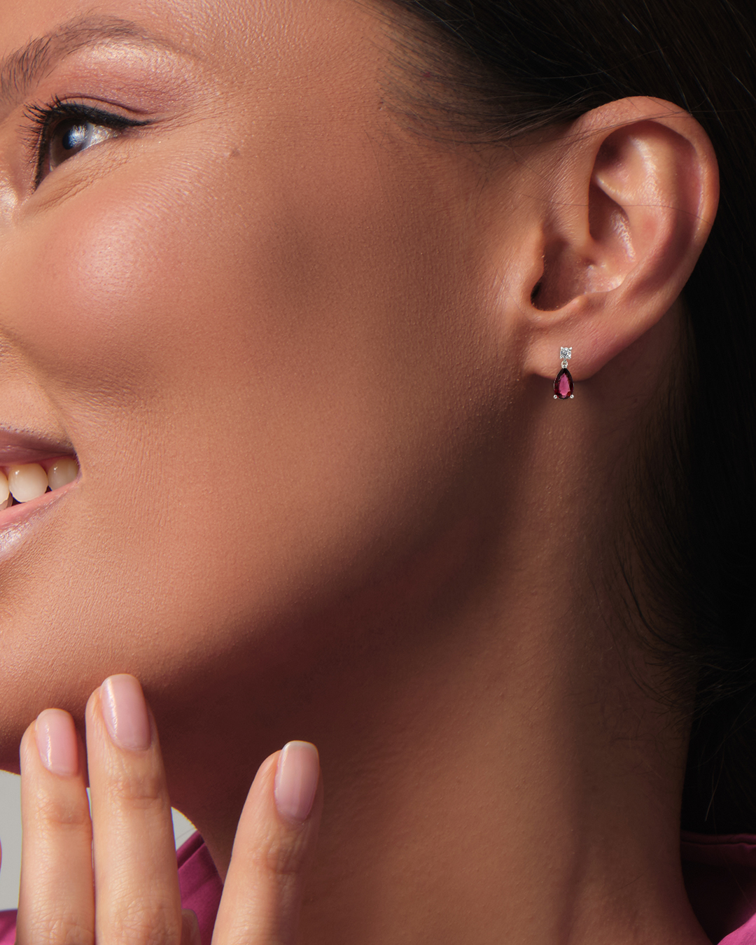 A graceful and feminine pair that highlights the rich beauty of garnet with a classic, sparkling finish.