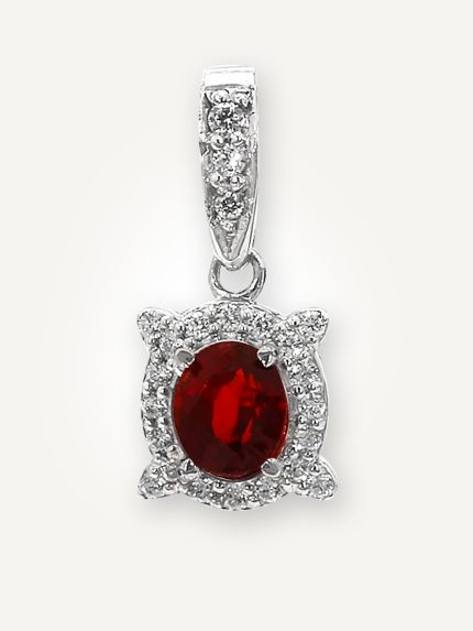 Oval-Cut Garnet Halo Pendant in 925 Sterling Silver